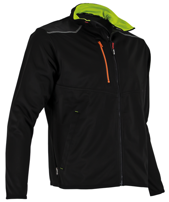 Fermeture à glissière injectée + protège menton – Cordon élastique – Surpiqûre flatlock – 1 poche poitrine zippée, ouverture verticale côté droit – Finition biais contrastant poignets et base – 2 poches basses passepoilées