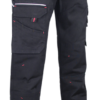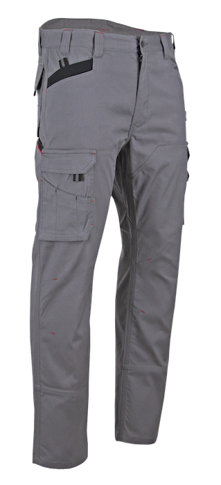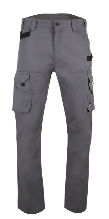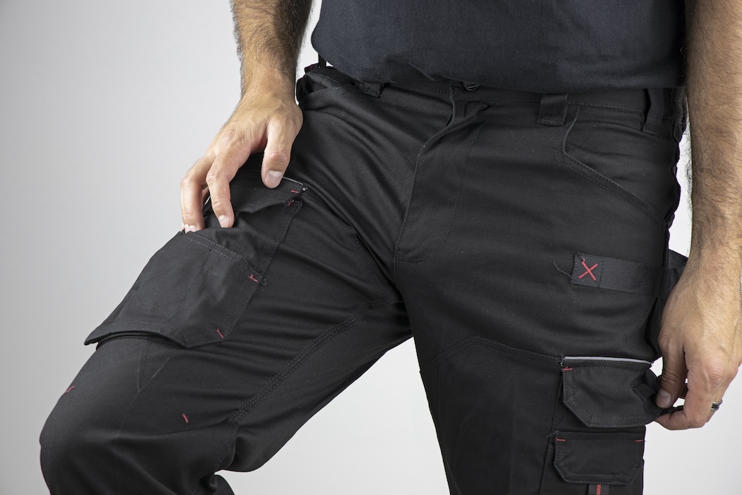 Braguette zip spirale – 1 anneau D – 2 grandes poches en biais + 1 poche ticket avec auto-agrippant – Cuisse droite : poche à rabat + emplacements outils – Cuisse gauche : 1 grande poche avec