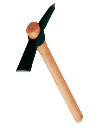 Outil acier forgé. Douille conique. 1 tête pic 1 tête panne. Poids 400 g. Manche bois.